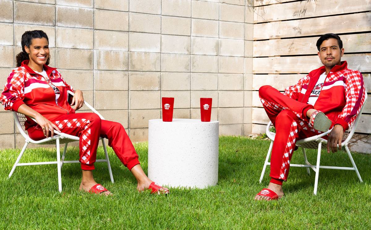 The US restaurant chain has released a limited-edition capsule collection, aptly named ‘Pizza Hut Tastewear’, which comprises a tracksuit, t-shirt, slides, a bejewelled pepperoni chain and a cup, all in the company’s classic red and white colourway.